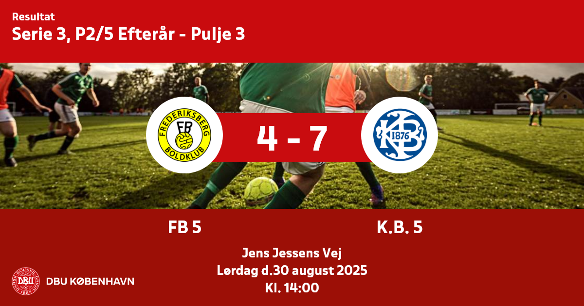 Afbud skal meddeles modstander såvel som DBU København senest 2 hverdage før spilledagen.